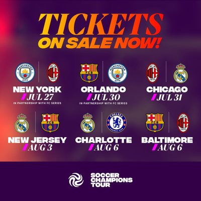 Real Madrid, Barcelona, Manchester City, Chelsea y AC Milan participarán en la gira, con partidos en Nueva York, East Rutherford, Orlando, Baltimore, Chicago y Charlotte. Madrid y Barcelona jugarán tres partidos cada uno -incluido un Clásico en el MetLife Stadium de Nueva Jersey-, además de tres partidos del Milan contra City, Madrid y Barça. El City jugará dos veces, mientras que el Chelsea sólo disputará un partido contra el Madrid en el Bank of America Stadium.